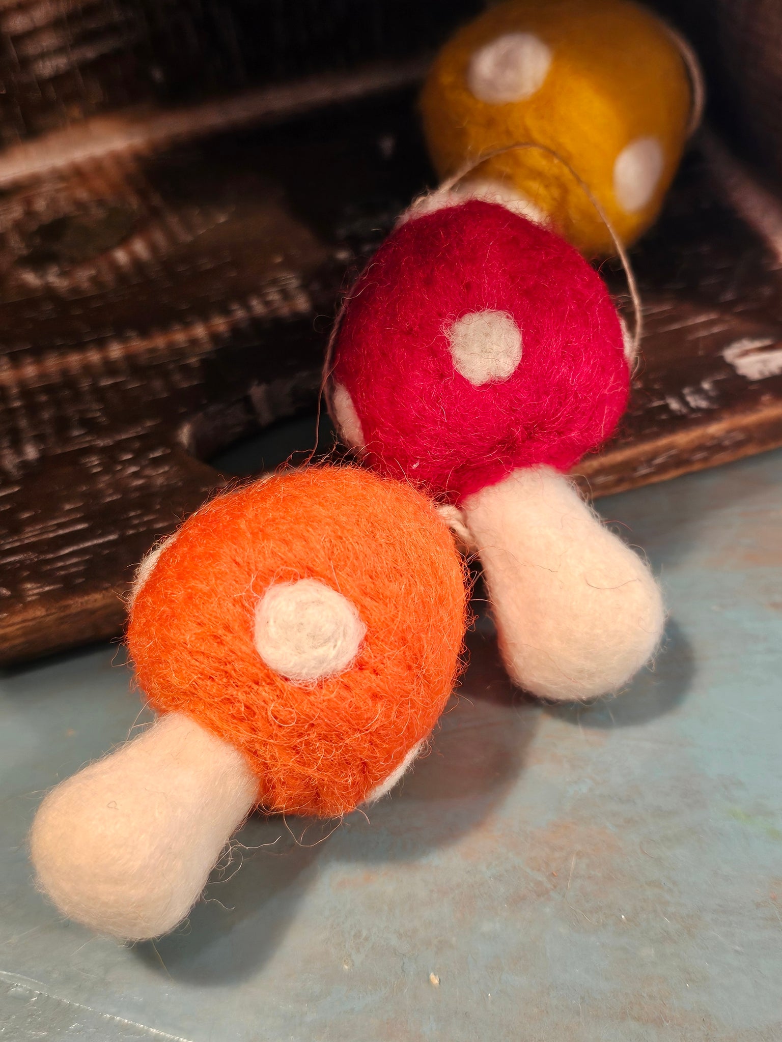 Mushrooms measure approx 8cm long with a natural hanging loop.