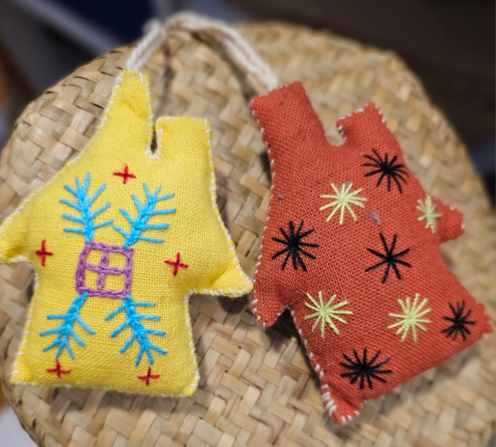 Hand made and embroidered these cute festive houses can be strung up during the festive season or make great imagination play pieces.