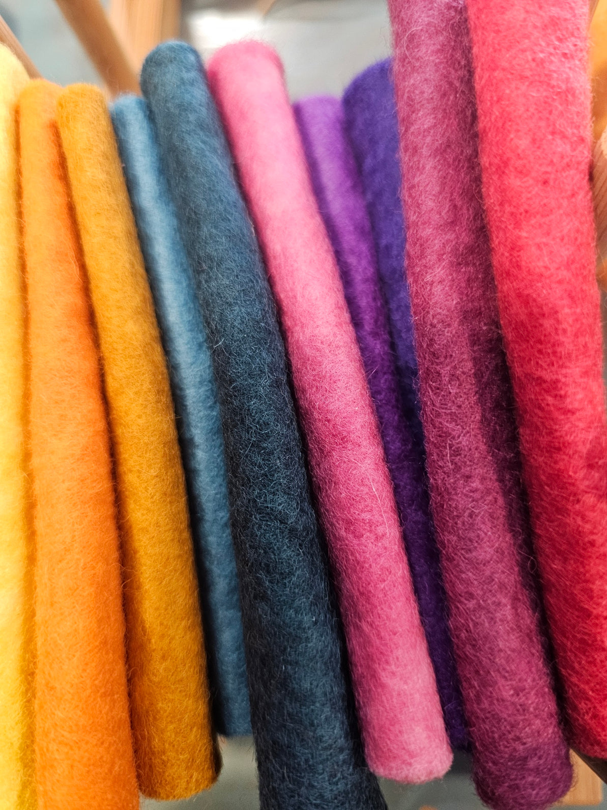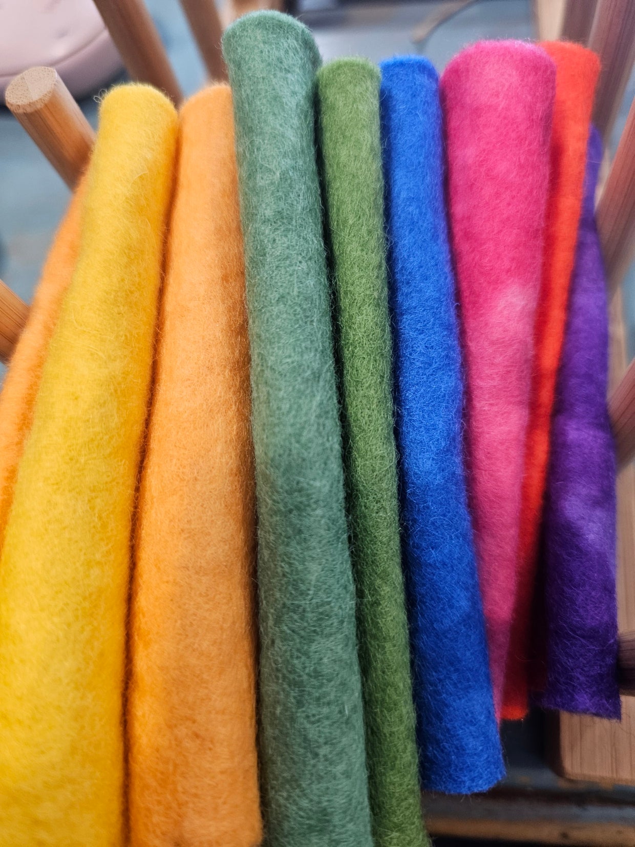 A beautiful range of 100% wool felt strips, locally dyed-by-hand with non toxic, Australian-made Landscapes dyes.